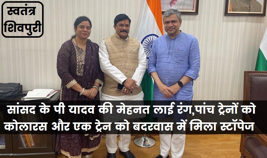 सांसद के पी यादव की मेहनत लाई रंग,पांच ट्रेनों को कोलारस और एक ट्रेन को बदरवास में मिला स्टॉपेज