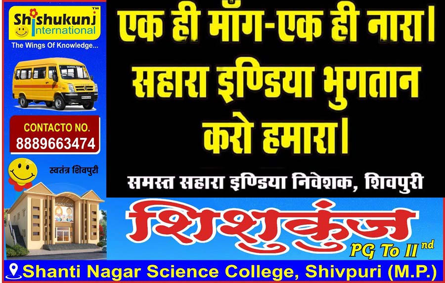 शिवपुरी। शहर में सहारा इंडिया परिवार के खिलाफ दो एफ आई आर दर्ज है परंतु शिवपुरी एसपी को बार बार आवेदन देने के बावजूद शिवपुरी एसपी सहारा इंडिया से सताए शिवपुरी जिले के 7500 हजार से ज्यादा निवेशकों को उनकी राशि दिलाने में असफल दिखे हैं। वही शिवपुरी पुलिस भी आप सहारा इंडिया मामले में कोई दिलचस्पी नहीं ले रही है ।