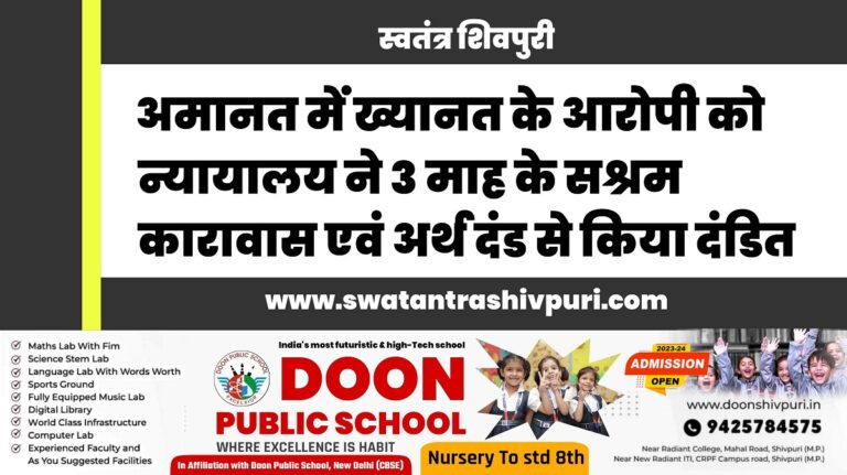 READ MOREशिवपुरीे। खबर पोहरी न्यायलय से आ रही है। जहां माननीय न्यायिक मजिस्ट्रेट प्रथम श्रेणी न्यायालय, तहसील पोहरी के द्वारा अमानत