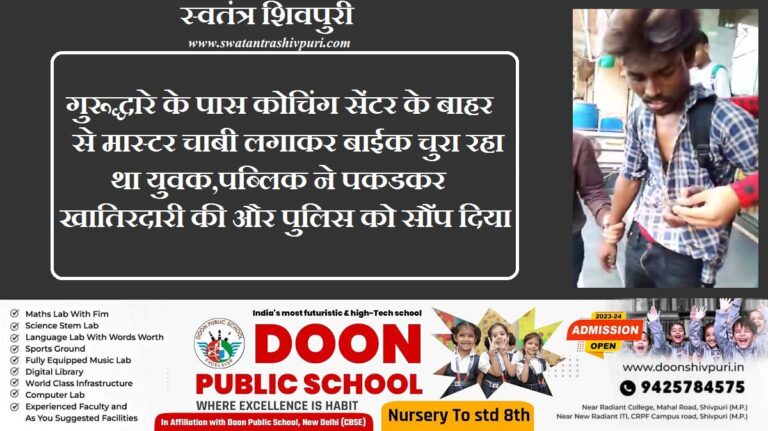 READ MOREशिवपुरी। खबर शहर के सिटी कोतवाली क्षेत्र के गुरुद्वारा चौराहे से आ रही है। जहां आज दोपहर एक बाइक चोर