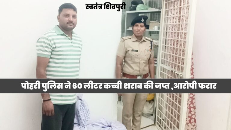पोहरी पुलिस ने 60 लीटर कच्ची शराब की जप्त ,आरोपी फरार