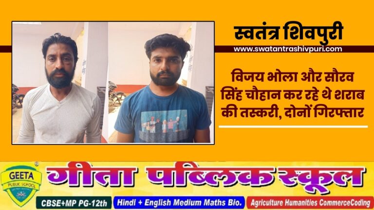 READ MOREशिवपुरी। आज शिवपुरी पुलिस ने अवैध शराब बेचते हुए दो आरोपीयों को गिरफ्तार किया है। उक्त आरोपी बाईक से शराब