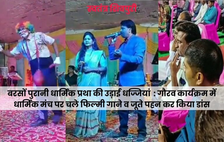 बरसों पुरानी धार्मिक प्रथा की उड़ाई धज्जियां : गौरव कार्यक्रम में धार्मिक मंच पर चले फिल्मी गाने व जूते पहन कर किया डांस