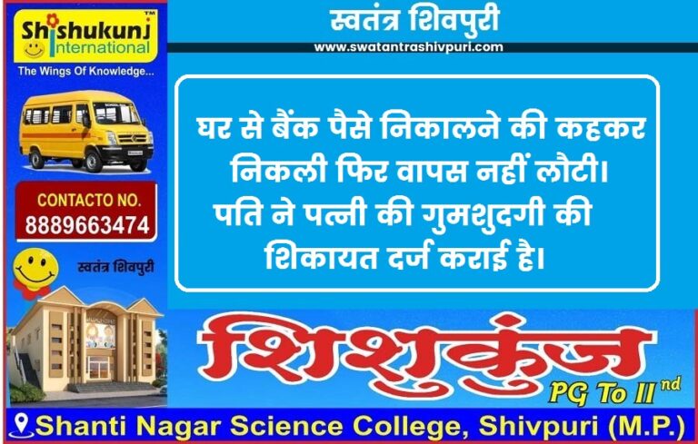 READ MOREशिवपुरी जिले के पोहरी थाना क्षेत्र के लक्ष्मीपुरा गांव की रहने वाली एक महिला घर से बैंक पैसे निकालने की