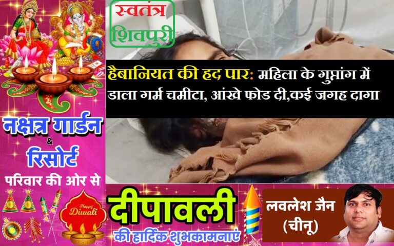 READ MOREशिवपुरी। खबर जिले के मायापुर थाना क्षेत्र से आ रही है। जहां आज एक महिला हैबानियत का शिकार हुई है।