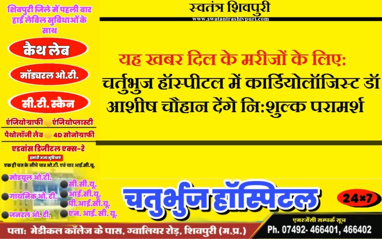 READ MOREशिवपुरी। हाल ही में जिस चर्तुभुज मल्टी हॉस्पिटल का शुभारंभ हुआ है। वहां निशुल्क परामर्श शिविर का आयोजन 9 अक्टूबर