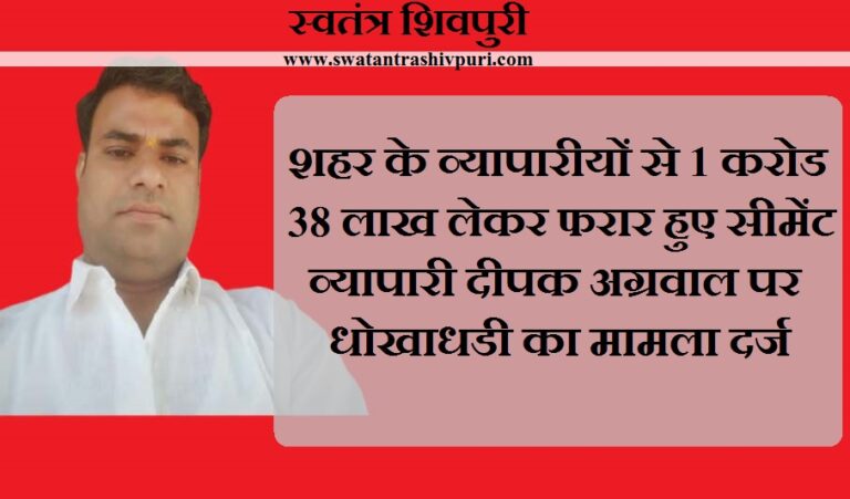 READ MOREशिवपुरी। जिले में बीते 25 तारीक से शहर से लगभग दो करोड लेकर फरार हुए सीमेंट व्यापारी दीपक अग्रवाल के