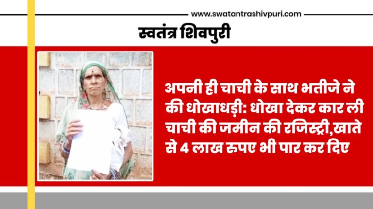 READ MOREशिवपुरी। खबर पुलिस अधीक्षक कार्यालय से आ रही है जहा एक महिला ने अपने ही भतीजे पर धोखाधड़ी का आरोप