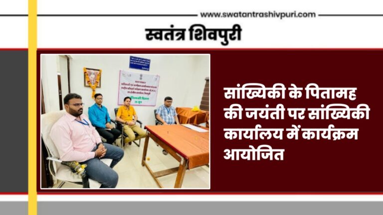 शिवपुरी। आज राष्ट्रीय प्रतिदर्श सर्वेक्षण कार्यालय शिवपुरी द्वारा दिनांक 29-06-2023 को राष्ट्रीय सांख्यिकी दिवस के उपलक्ष में कार्यालय परिसर में