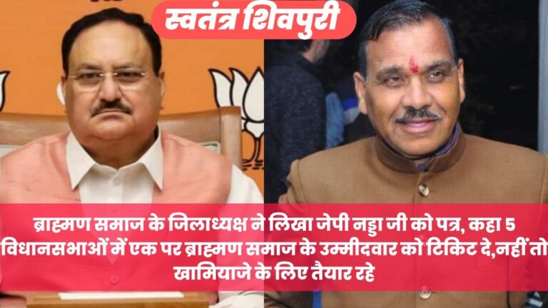READ MOREशिवपुरी। आज शिवपुरी में ब्राह्मण समाज के जिलाध्यक्ष पुरुषोत्तम कांत शर्मा ने भाजपा के राष्ट्रीय अध्यक्ष जेपी नड्डा को पत्र