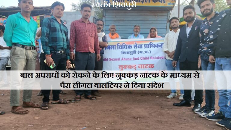 READ MOREशिवपुरी। शिवपुरी में नुक्कड़ नाटक राज्य विधिक सेवा प्राधिकरण जबलपुर के आदेश अनुसार तथा प्रधान जिला एवं सत्र न्यायाधीश दीपक