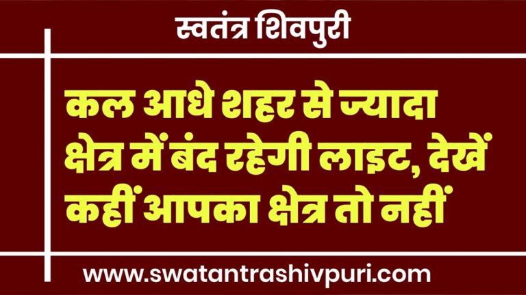 READ MOREशिवपुरी। आवश्यक रखरखाव कार्य किए जाने हेतु 33 केवी बाणगंगा उपकेंद्र के 11 के.व्ही. आर.के.पुरम फीडर, 11 के.व्ही. चीलौद फीडर,
