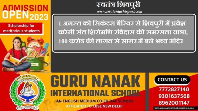 READ MOREशिवपुरी। संत शिरोमणि गुरुदेव रविदास मंदिर निर्माण हेतु जल एवं मिट्टी संग्रहण तथा जन जागरण हेतु समरसता यात्रा का प्रथम