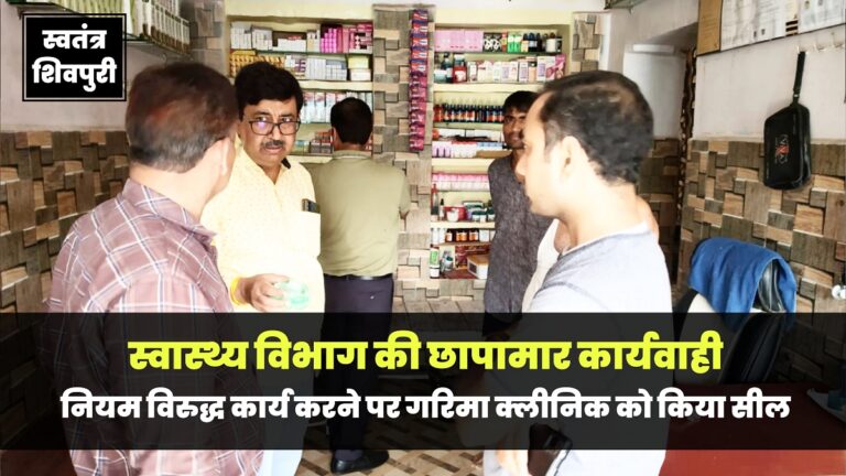 READ MOREशिवपुरी। स्वास्थ्य विभाग द्वारा करैरा विकासखंड के ग्राम आमोलपठा में संचालित गरिमा क्लीनिक पर आज छापामार कार्रवाई कर क्लीनिक को