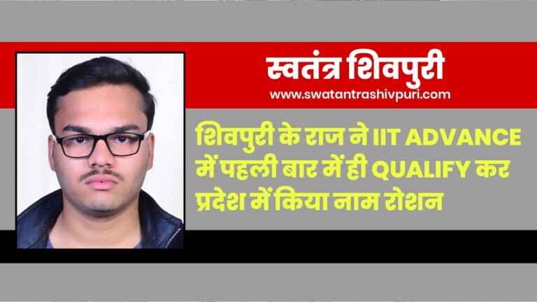 SHIVPURI के राज ने IIT ADVANCE में पहली बार में ही QUALIFY कर प्रदेश में किया नाम रोशन