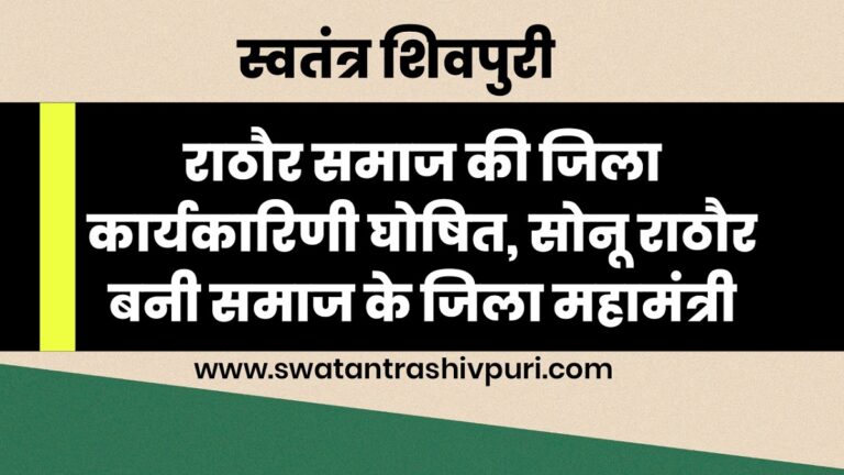 READ MOREशिवपुरी। राठौर समाज जिला शिवपुरी के जिला अध्यक्ष एवं पार्षद ताराचंद राठौर ने शिवपुरी जिले की राठौर समाज की जिला