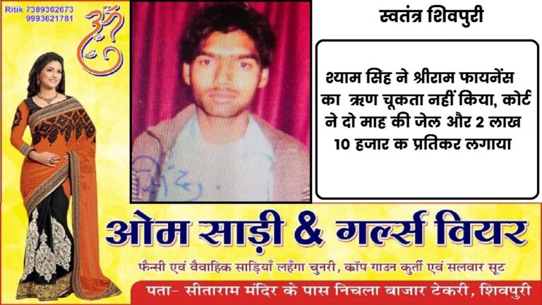 READ MOREशिवपुरी। बीते रोज श्री राम फाइनेंस कंपनी के शाखा प्रवंधक रावेंद्र शर्मा द्वारा बताया गया कि श्याम सिंह धाकड़ पुत्र