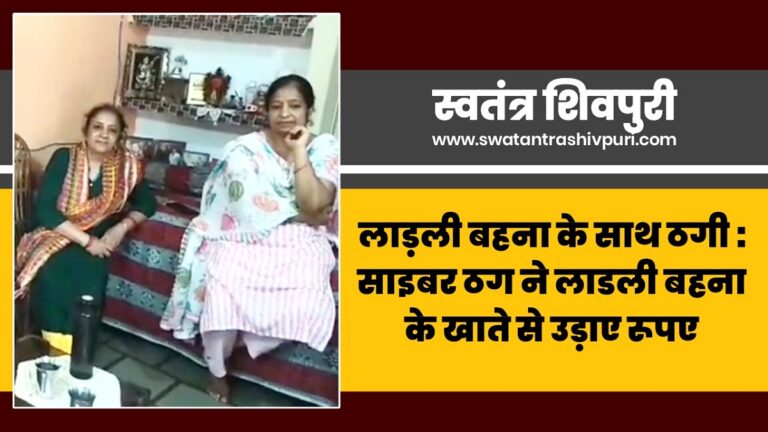 READ MOREशिवपुरी। खबर शहर के दर्पण कोलॉनी से है जहां एक लाड़ली बहना के साथ साइबर ठग ने ठगी करते हुए