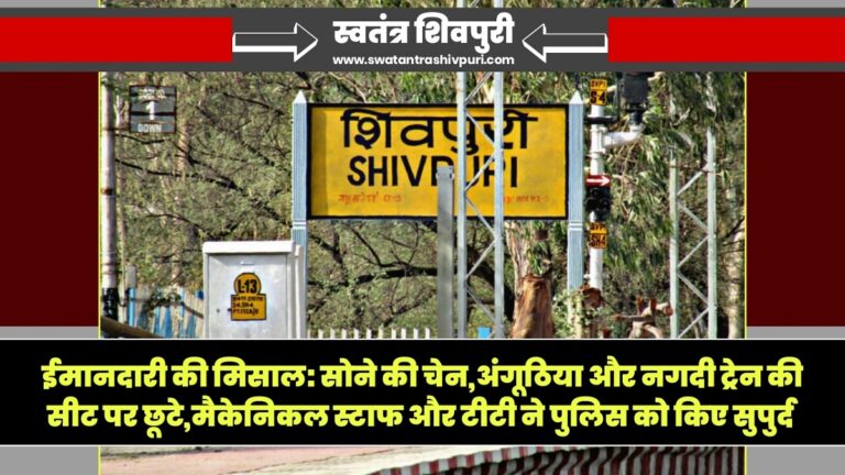READ MOREशिवपुरी। बीते रोज शिवपुरी से गुजरने बाली कोटा-इटावा रेल गाड़ी से शिवपुरी स्टेशन उतरे किसी यात्री का सामान सीट पर