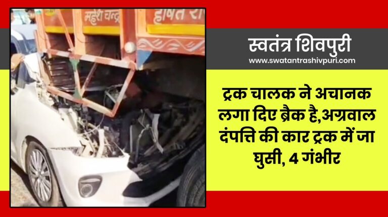 ट्रक चालक ने अचानक लगा दिए ब्रैक, अग्रवाल दंपत्ति की कार ट्रक में जा घुसी,चार गंभीर