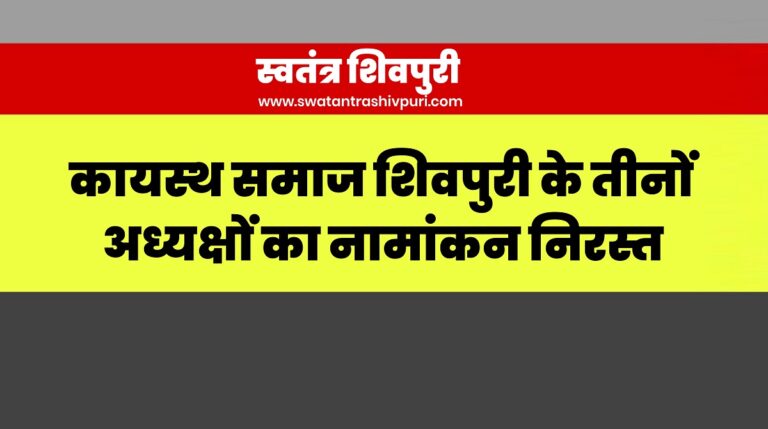 READ MOREशिवपुरी। कायस्थ समाज एकता समिति के रजिस्ट्रेशन पर कायस्थ समाज शिवपुरी का चुनाव संपन्न होना था जिसके मतदान तिथि 27