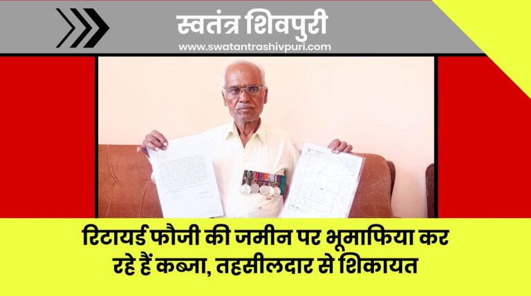 READ MOREशिवपुरी। खबर जिले के नरवर अनुविभाग के ग्राम पंचायत इंदरगढ की है जहां भू माफिया ने रिटायर्ड फौजी रघुवीर सिंह