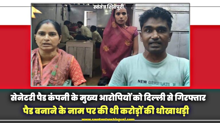 READ MOREशिवपुरी। खबर शहर के सिटी कोतवाली से आ रही है जहां कोतवाली पुलिस ने सेनेटरी पैड धोखाधड़ी के मामले में