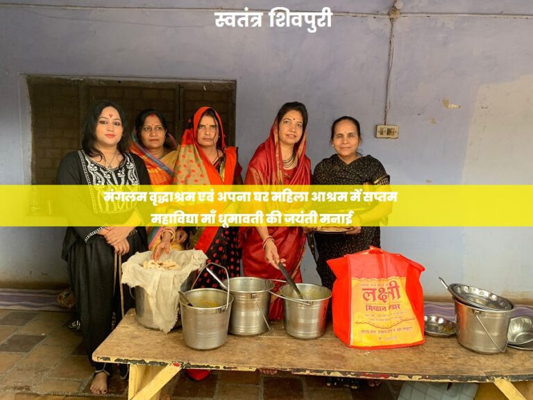 READ MOREशिवपुरी। 28 मई रविवार को माँ धूमावती ज्योतिष अनुसन्धान एवं सेवा संस्थान द्वारा मंगलम वृद्धाश्रम एवं अपना घर महिला आश्रम