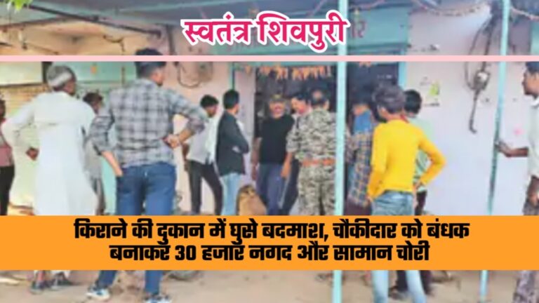 शिवपुरी। खबर जिले के कोटा-झांसी फोरलेन हाइवे से है जहां एक किराने की दुकान पर 5 बदमाशों ने चौकीदार को