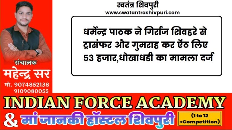 READ MOREशिवपुरी। खबर शहर के सिटी कोतवाली क्षेत्र से आ रही है। जहां एक युवक ने एक युवक पर धोखाधडी कर